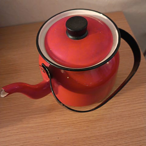 Punainen Pehtoori 1 l pannu: kork. 16,5cm valm.vuosi 1957, panssariemaloitu teräs. Kannessa muutamia kolhuja, muuten ehyt. Hinta 90euroa