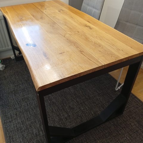 Ihastuttava vanha, ajan patinoima ruokapöytä.
