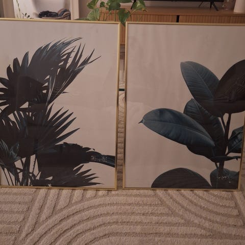 2kpl 50x70cm sisustusjulisteita kehyksineen yht.25€