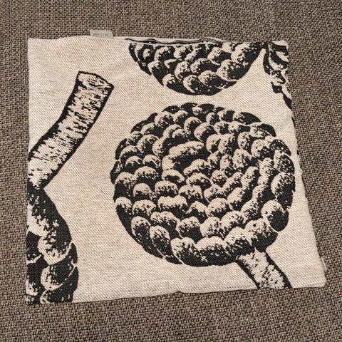 Hyväkuntoinen, käytetty tyynyliina. Neliönmuotoinen, standardikokoinrn sohvatyynyn päällinen. Vetoketju.