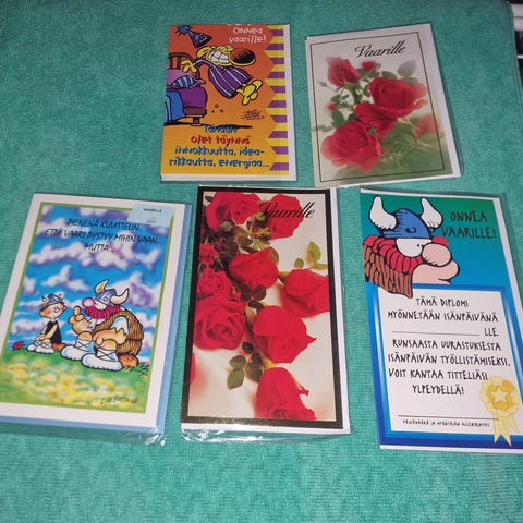 Erilaisia onnittelu ym kortteja pinkka, muoveissa 2 lukuunottamatta