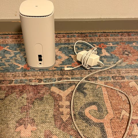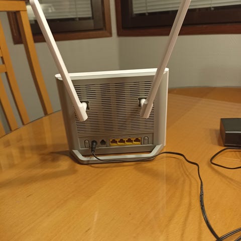 ZTE reititin valkoinen. Laite sisältää useita Ethernet-portteja ja liitäntöjä verkkoyhteyksiä varten.