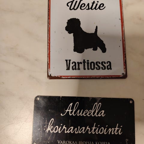 Kulmissa pienet reiät kiinnittämistä varten. Joissain hintalappu tai sen jäämiä takapuolella. Ei mitään muuta huomautettavaa kunnossa, koska ei ole otettu muoveista pois.