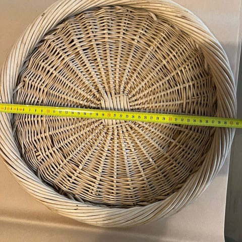 Hyvässä käytetyssä kunnossa oleva Muuton muovinen leipäkori ja tarjoiluliina. Koko näkyy viimeisessä kuvassa.