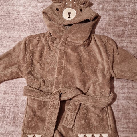 Myydään pehmeä, hyväkuntoinen kylpytakki. Koko 86/92 cm. Savuton, eläinvapaa koti.