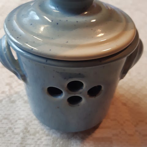Kuin uusi valkoinen, kultakuvioinen keraaminen astia, Ø15cm, kork 8,5cm + kansi bambua, ehjä tiiviste. Toridiili/ Nouto ja käteismaksu.
