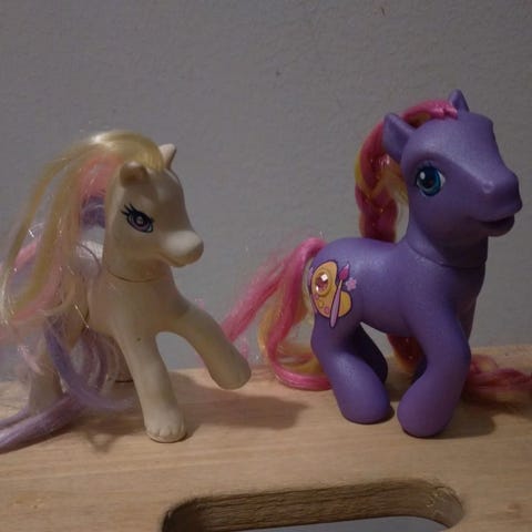 Neljä ihastuttavaa alkuperäistä My little ponia. Harjat ovat hieman takussa, mutta saa pienellä hoitamisella hienoksi. Nouto Kuninkaisista.