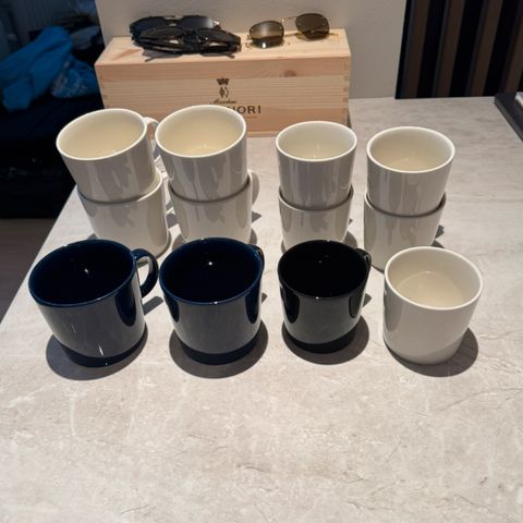 Iittalan valkoiset kahvikupit 4 kappaletta ja 2 kappaletta vastaavia teekuppeja.