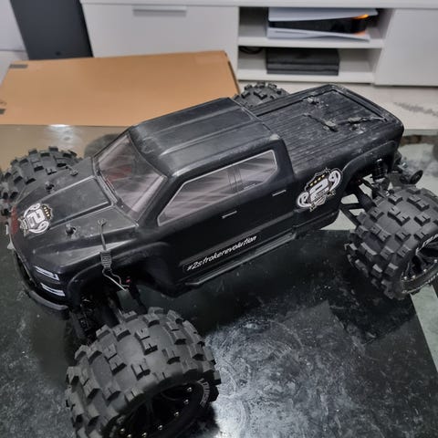 Myydään hyvin pidetty Arrma big rock 3s, johon on tehty kestävyyteen ja ulkonäköön päivityksiä. Auto toimii moitteettomasti ja on valmis heti ajoon. Auto sisältää 2 akkua ja 2 laturia.