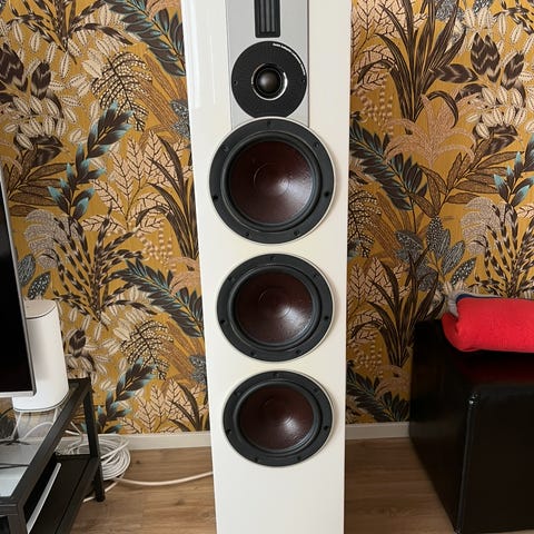Gigantin outletista ostettu Devialet Phantom I 108db kaiutin. Kaiutin myytiin alennetulla hinnalla minulle siinä olevien naarmujen ja elementin painaumien takia. Nämä ei vaikuta kaiuttimen ääneen mitenkään. Kaikki toimii niin kuin pitkääkin ja takuutakin on vielä jäljellä ensi kesään. Mukana myös kaukosäädin.