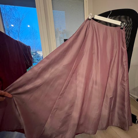 Tarvitsetko juhlahametta vanhojen tansseihin, juhlaan tms.? Hyväkuntoinen tummanpunainen puku, jonka saa joko kevyillä olkaimilla tai ilman. Asuun kuuluu vielä erillinen hartiahuivi.