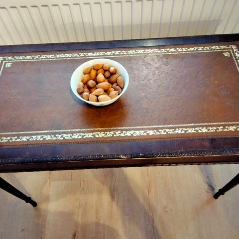 Hieno ja värikäs pöytä. Sisällä paljon säilytystilaa. Liukuovet ja renkaat.