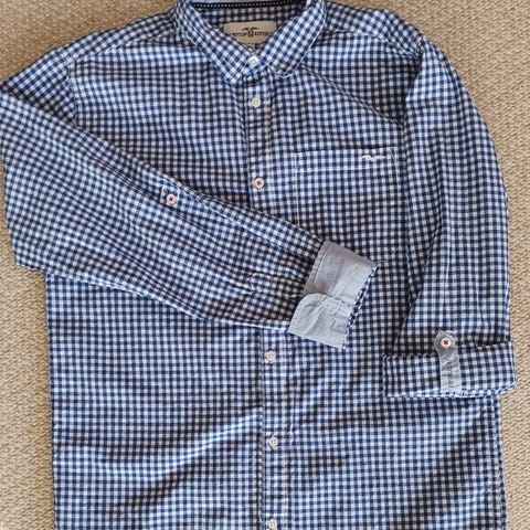 Hyväkuntoinen, ruutukuvioinen kauluspaita.