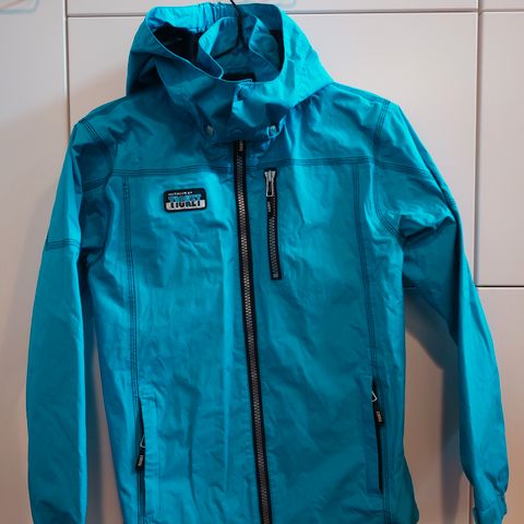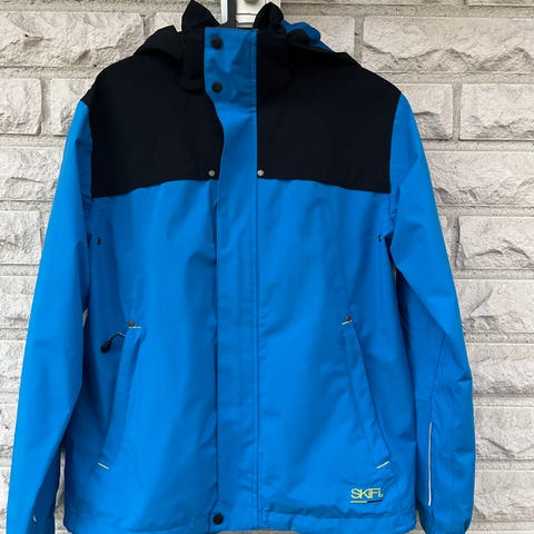 Hyväkuntoinen ja siisti lasten takki ohuella vuorella. 100 % polyesteri. Kaksi vetoketjullista taskua. Käytetty muutaman kerran hiihtotakkina.