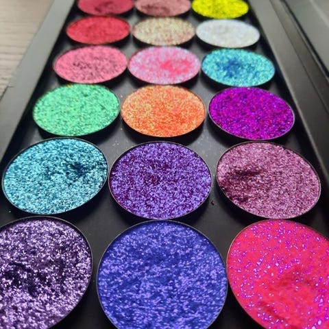 Myös muita glittereitä myynnissä, metalliset ja värikkäät