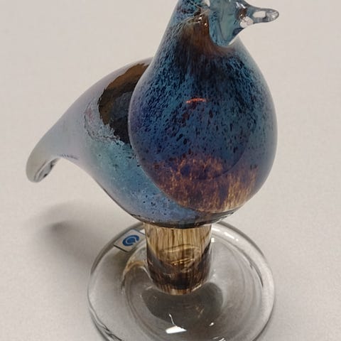 Todella näyttävä lasilintu korkeus n.30cm ja siipien väli 45cm