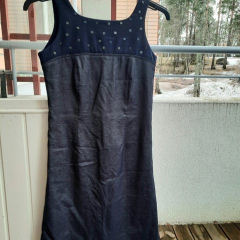 Käyttämätön paljettikoristeinen mekko, taskut. Kokoa n.S