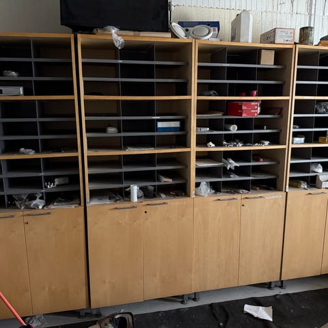 Keramiikkastudiolla ollut arkistohylly kaupan. Hieman käytön jälkiä, yleisilme kuitenkin siisti. Ei avainta.