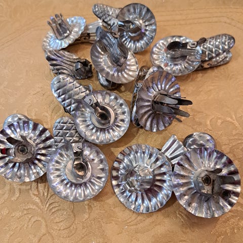 Kuusi kappaletta kultaisia metallisia ruusun muotoisia joulukuusenkynttilän pidikkeitä. Kiinnitetään kuusenoksaan klipsin avulla.