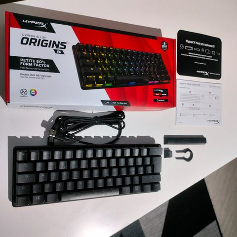 Hyväkuntoinen HyperX Red -kytkimillä varustettu näppäimistö. Näppäimistön värejä, animaatioita ja käyttäytymistä voi hallita NGENUITY softalla.