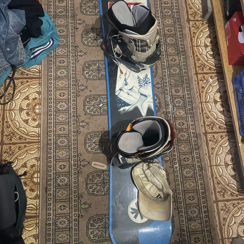 Myydään laskettelusetti ja lumilautasetti yhdessä tai erikseen.