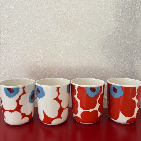 2 kpl Marimekon Unikko kuppia, joiden kunto on erinomainen.