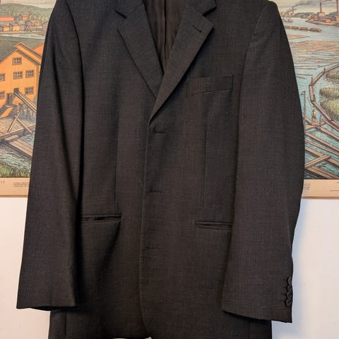 Rileyn laadukas tailored fit irtotakki/bleiseri. Väri tummanharmaa/grafiitti. Materiaali 60% villaa, 38% polyesteria. Koko 100C, joka vastaa EU-kokoa 50/52R. Omaan profiiliin sopii erittäin hyvin (187cm, 85kg).
