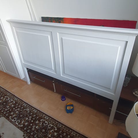 Vanha ovi 84x194,5 ollut sängynpäätynä ja nyt sisustuselementtinä