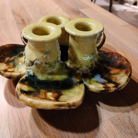 Pentikin kaunis ruskea vintage kynttelikkö kolmelle kynttilälle. Ehjä ja kaunis väritys. Pohjassa logo painatus. Nouto Huittisista tai postitus ostajan kustantamana.