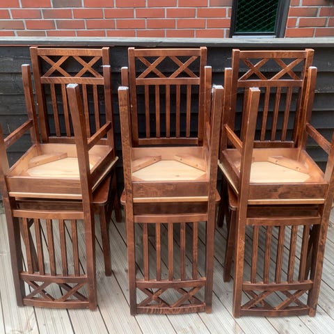 Valmistettu kestävästä massiivikoivusta, mikä takaa pitkäikäisyyden ja laadun. Tuoleja on kaksi samanlaista, jotka myydän mieluiten 2 kpl settinä.
