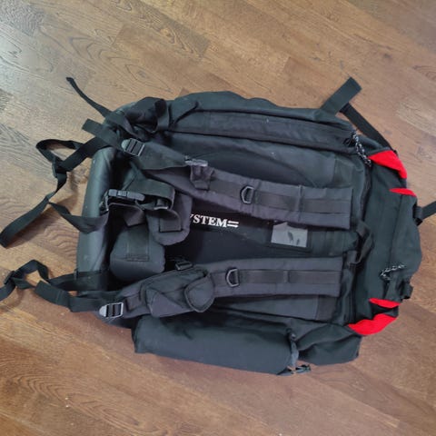 Muutaman vuoden vanha, mutta lähinnä pölyä varastossa kerännyt perus rinkka.