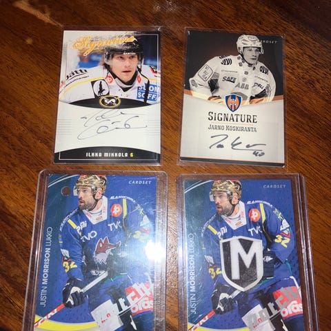 Liiga kortteja, kuvissa vain erikoiskortit. Hintaa voidaan sopia kortin kunnon ja arvon perusteella. Normi kortteja löytyy kausilta 2016-17, 2017-18, 2018-19, 2019-20, 2020-21, 2021-22 2023-24 Joten jos jokin normi kortti kiinostaa, voi lähettää viestiä niin voin katsoa onko minulla niitä.