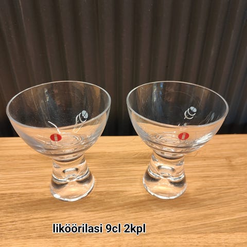 2kpl hienoja likööri-/coctail laseja. Ovh 85€/2kpl. Käyttämättömät mutta pesty kerran astianpesukoneessa jolloin tarrat haalistuneet. Huomioitu hinnassa.