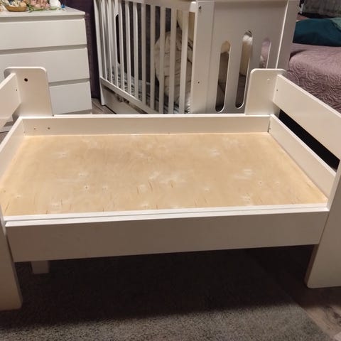 Mummulassa ollut vähällä käytöllä "Prinsessasänky". Mukana hyväkuntoinen patja 130 cm+35 cm. Kuljetus Treelle tietyissä rajoissa mahdollinen. Säilytys nyt purettuna.