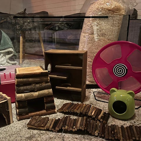 Myydään jyrsijälle terraario ja tarvikkeita.