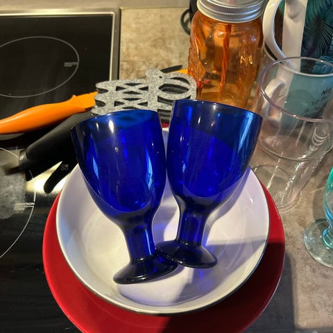 Mustat kahvikupit. Kuppeja on 6kpl. Lautasista yksi on kadonnut aikojen saatossa eli niitä on 5kpl. Kahdesta kupista ja lautasesta löytyy Arabia/Iittalan leimat.