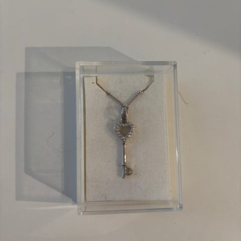 Kultajousen hopeinen Keiju-koru. Riipus ja ketju hopeaa, lisäksi riipuksessa timantteja