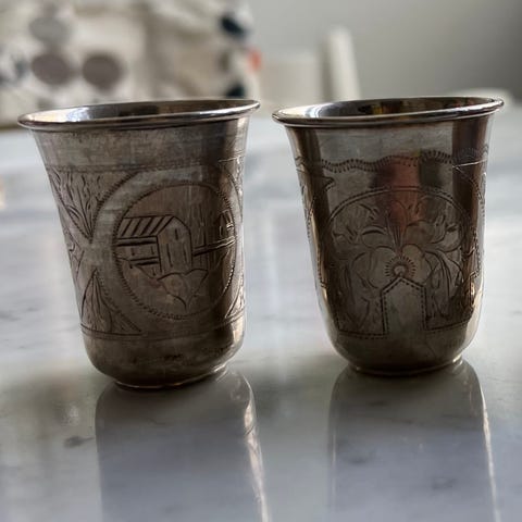 Tinaa (pohjassa leima T90) (tai hopeoitu mahdollisesti messinki)