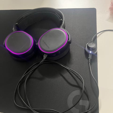Steel Series pelikuulokkeet chat/game äänimiksauksella. Toimii hyvin discordin kanssa. Kuulokkeissa myös itse säädettävät RGB valot.