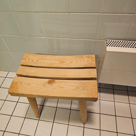 Täysin uudenveroinen 2-askelmainen sauna jakkara Thermory Lämpökäsitelty haapa. 760x700x500 (PxLxK). Bauhaus-hinta €235.
