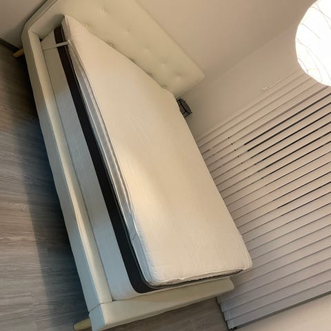 Tosi painavat ja laadukkaat rungot 2x80cm. Tyylikkäät puujalat ja kaksi klipsiä millä ne saa pysymään yhdessä. Laadukas petari ja petarin suoja. Runkojen väli ei haittaa petarin kanssa eli tällaisenaan parisänky. Pehmeähkö.