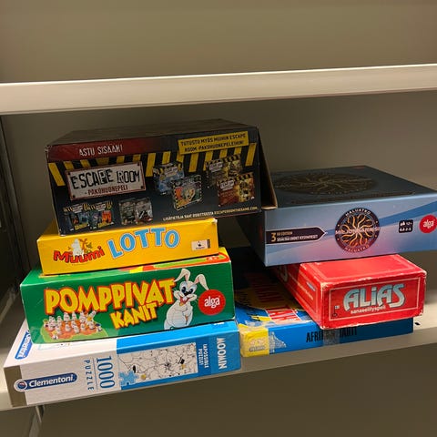 Myydään kasa pelejä. Trivial pursuit ja alias nähnyt elämää mutta muut pelit tosi hyvässä kunnossa ja katsoin että pitäisi olla palat mukana. En lähetä mutta voin keskustaan tuoda tai siiten nouto.