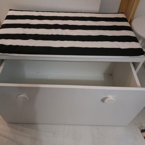 Myydään siisti Ikean Stuva säilytyspenkki. Pehmuste juuri pesty ja tahraton.