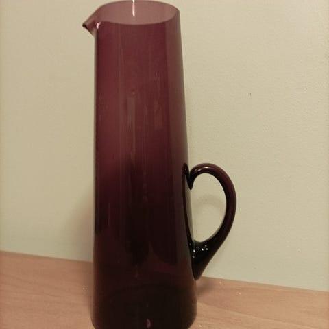 Korkeus on noin 22 cmTilavuus: 1LMateriaali: lasiDesign Kaj Francki -tarraPohjassa vähän siirtelyjälkiä ja sisäpuolella likaa