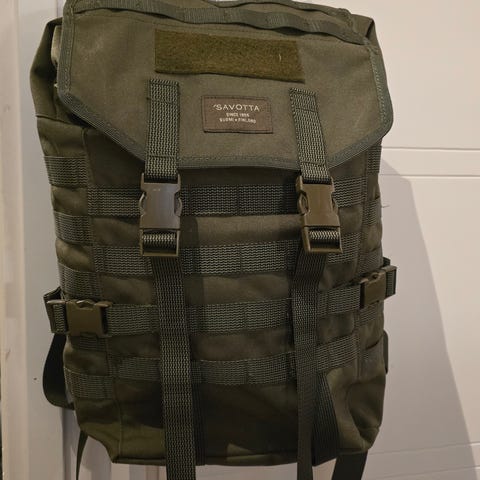 Savotta jääkäri reppu. Reppu on valmistettu kestävästä materiaalista ja siinä on useita taskuja ja säätömahdollisuuksia. Soveltuu esimerkiksi ulkoiluun ja retkeilyyn. Uutta vastaa. Joulupakettiin tarvitsevalle