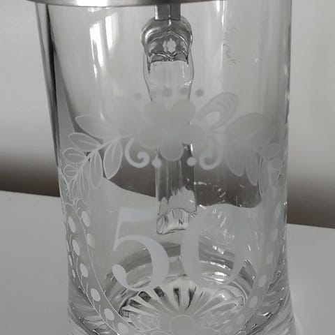 Mitat (HxK) ovat noin 7,5 x 7 cmMateriaali: lasiLisätiedot: Kaiverrukset: "Cornucopia", epäselvä tekijän signeeraus, "2022"