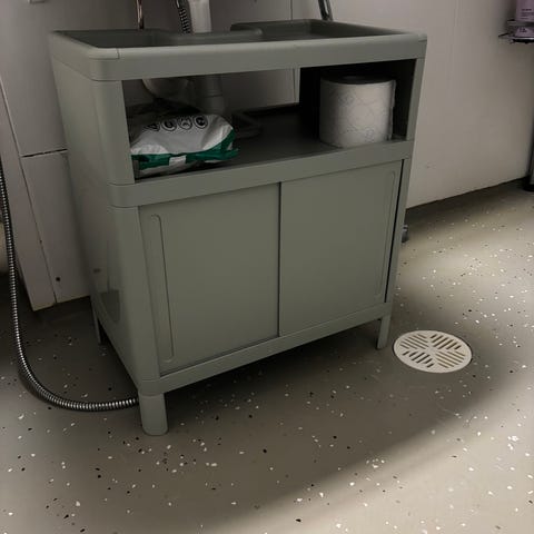 Mitat (SxLxK) ovat noin 20 x 38 x 61 cmMateriaali: kuitulevyEi allasta vain kaappi