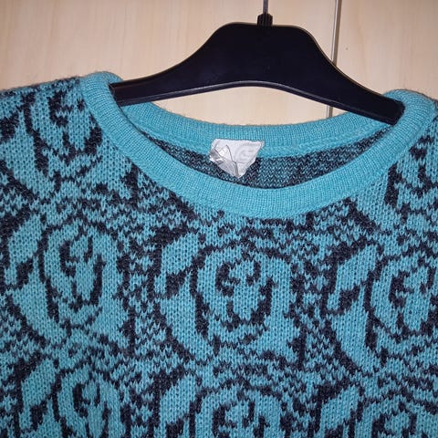 •Mustavalkoinen neule, jossa rinnassa pörröinen panda kangasmerkki. Materiaali luultavasti akryylia ja merkki FB sister. - hinta 6€