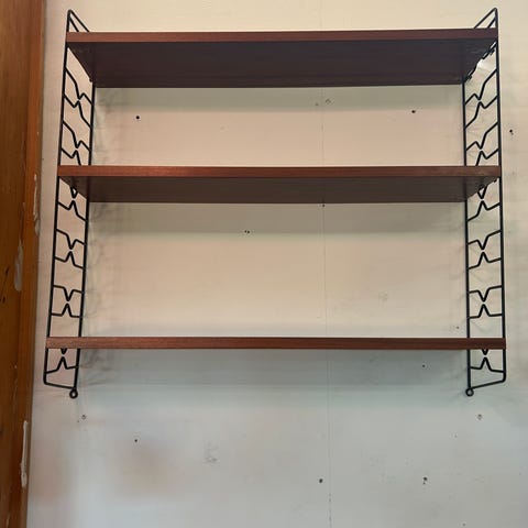 Myydään vanhat string hyllyn osat! Pitkään toivoin, että toinenkin metallipääty löytyisi vanhaa navettaa tyhjentäessämme, mutta ei tullut toista osaa vastaan. Enkä ole löytänyt kaupattavan tämän kokoista vanhaa päätyosaa. Myyn siis yhden hyllypäädyn sekä neljä puista hyllyä. Syvemmissä hyllyissä sellaiset moitteet, että toisessa on halkeamaa toisessa pääsyssä ja toisessa taas auringon haalistumaa.