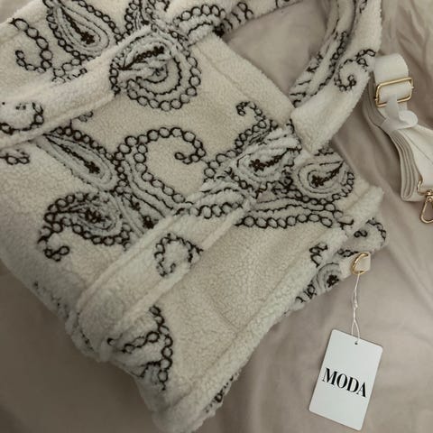 Musta laukku, jossa on kaareva yläreuna ja yksi olkahihna. Laukun pinta on teksturoitua nahkaa ja etupuolella on pieni kohokuvioitu logo.Väri: mustaMitat (LxK) ovat noin 27 x 24 cmEi mitään tietoja